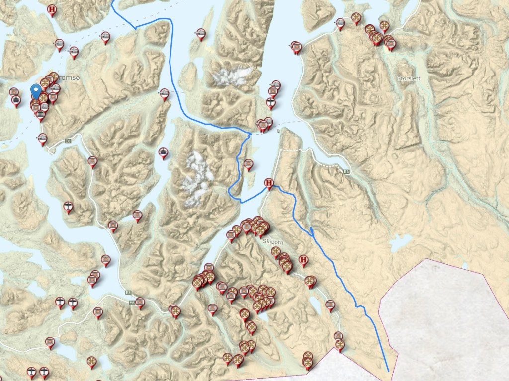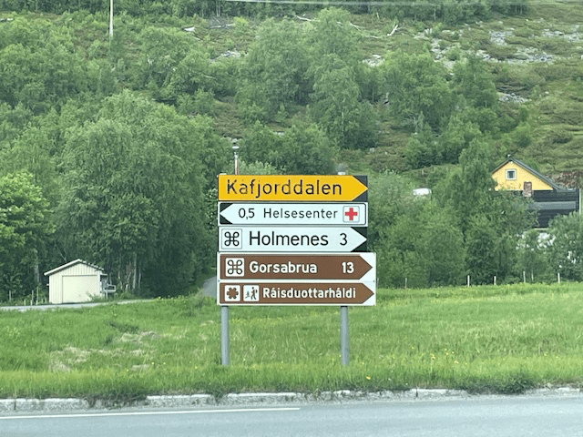 Vi ruller inn til Skibotn, et tettsted i Storfjord kommune med ca. 540 innbyggere. Skibotn er kjent som et sentralt knutepunkt på Nordkalotten, og har en forhistorie som bygger på tre stammers møte, med de utfordringer som fulgte av det. Bygda har vært flink til å ta vare på historien sin. Anbefaler et stopp. Her noen eksempler: https://no.wikipedia.org/wiki/Skibotn