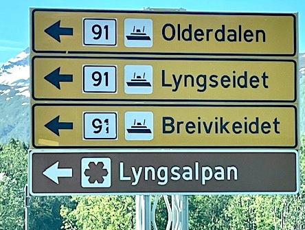 Et alternativ er å ta ferge over Ullsfjorden og Lyngenfjorden. Dette forkorter kjørestrekningen, men den totale reisetiden forblir omtrent den samme.