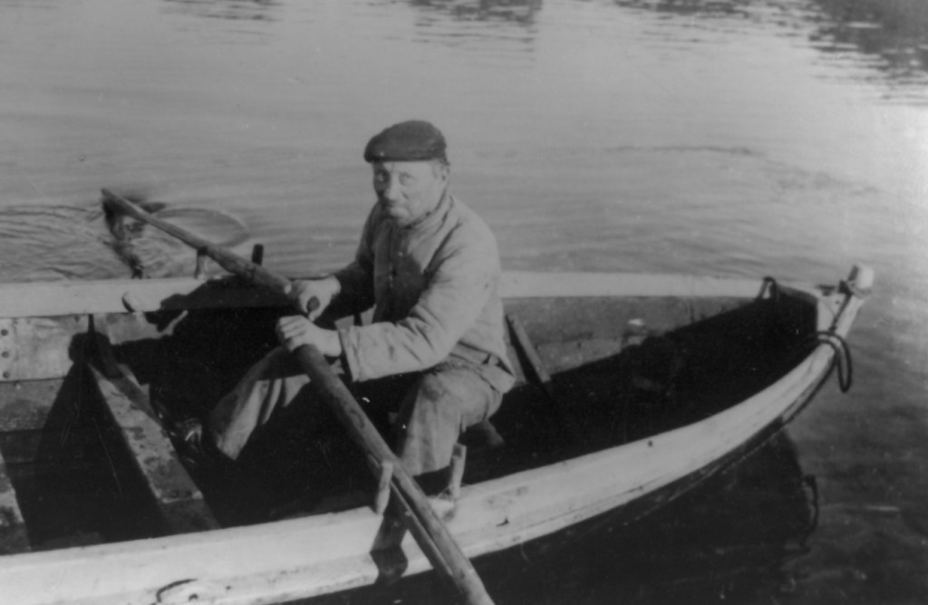 Men, en dag ble den krumbøyde mektig irritert, det var jo jeg som rodde under setting av garn. Han pekte mot sørøst,«ro dit»! Men denne dagen var det kuling fra sørøst, vind midt imot. Bautja fra Manndalen heitte det. Gråspurven slengte ut garnstein, glasskavlene fant sjøl veien utover rekka. Men nå kom vi ikke av flekken, jeg klarte ikke å få bevegelse i båten i kraftig motvind.. Da utbryter, «Tjårkola»,alias»flynderola»,som bar navnet Ole Andersen: