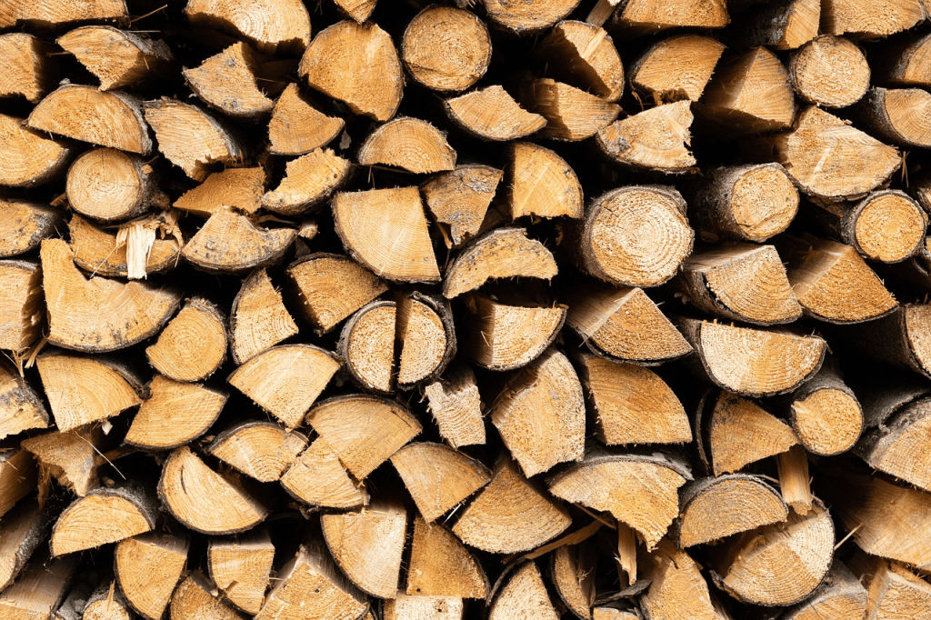 Her på baksiden av gammen så jeg også en liten gamme, sikkert en slags sjå. Hva mer var, der lå en stor vedstabel. Bjørk. Og bak vedstabelen igjen sto både snøscooter og slede parkert.