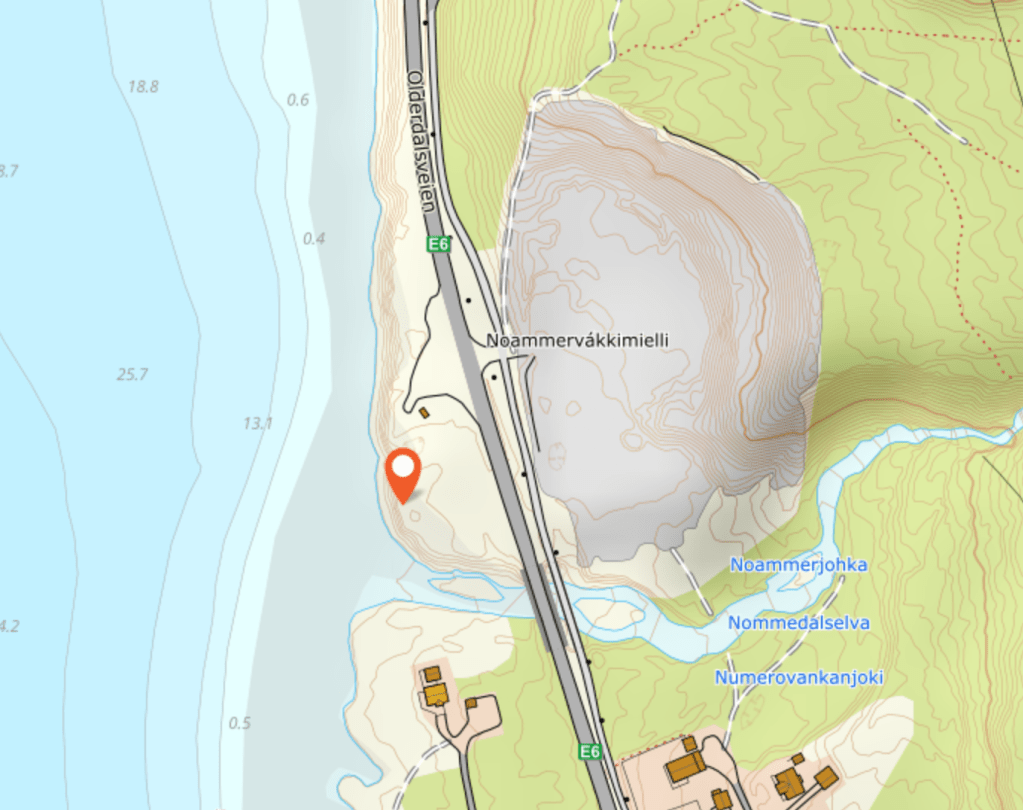 Monumentet ligger ca. 4 km sør for Olderdalen sentrum-