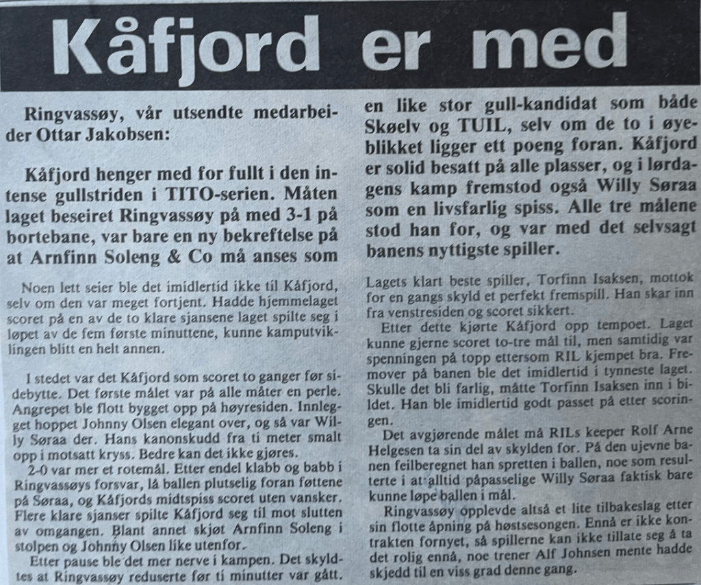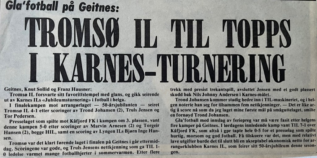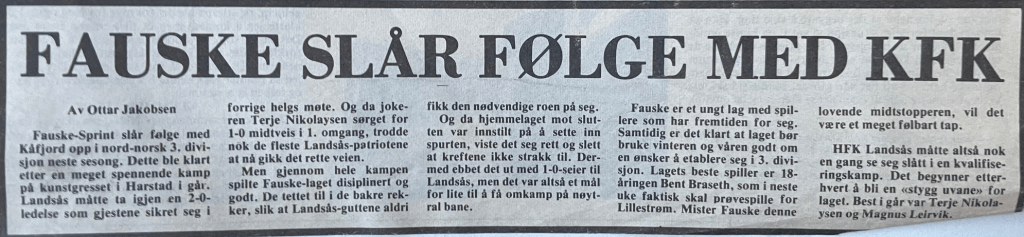 Sverre Sivertsen etterlot seg flere plastnett med avisutklipp – litt OIK, mye KFK og noe fra Jan Lindvall’s karriere. Noe var sortert etter årstall, men det meste var usortert. Ranveig Soleng har gjort en stor innsats med å grovsortere og lime dem inn i en utklippsbok. En stor takk til Sverre’s familie!