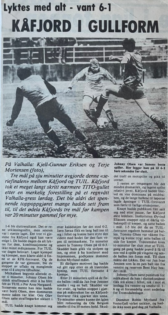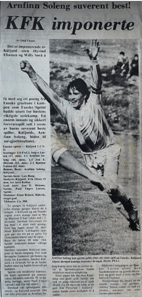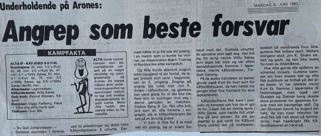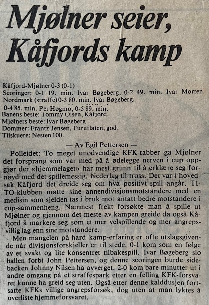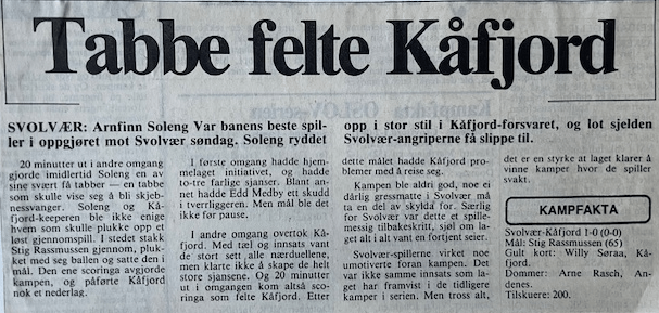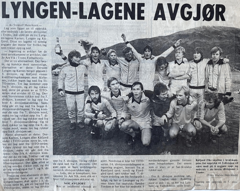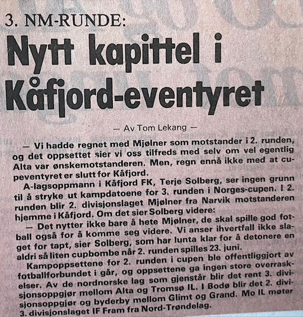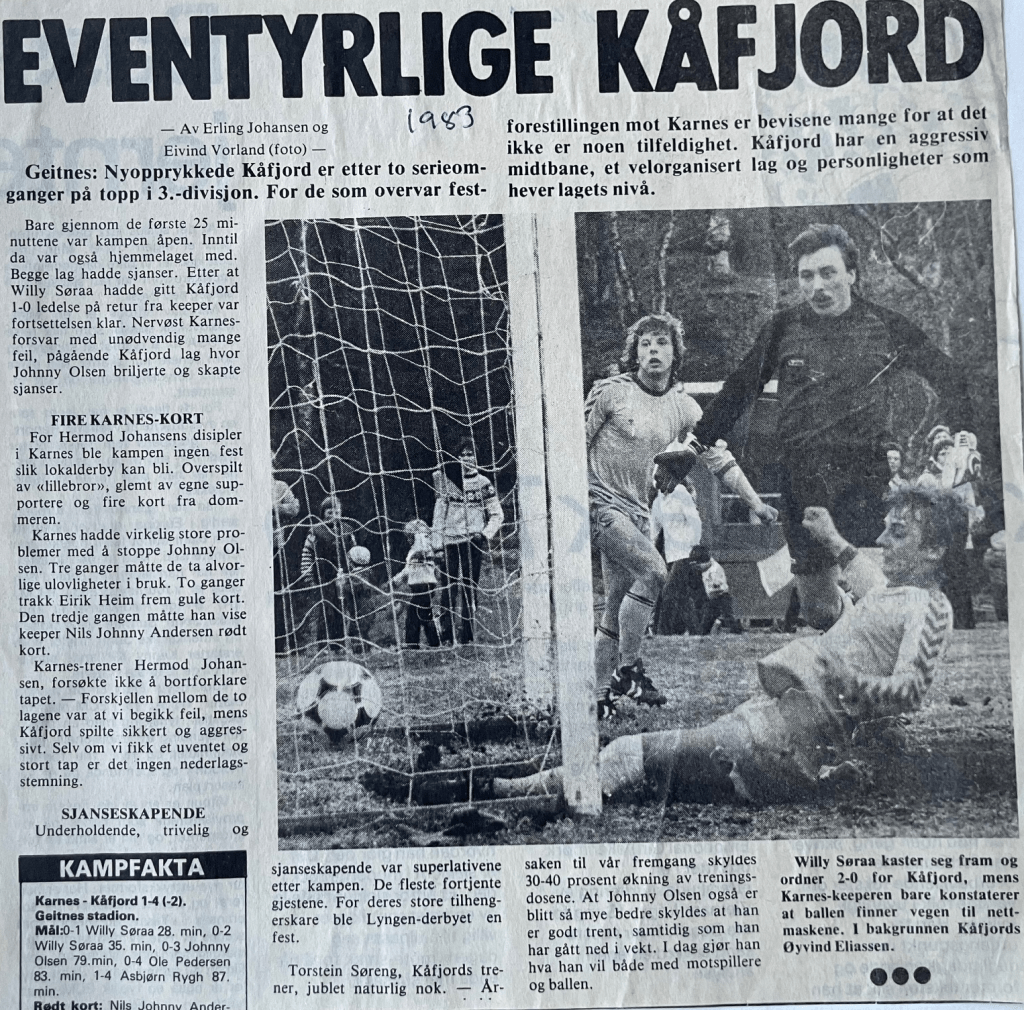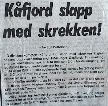 Kåfjord FK nådde sitt høgste nivå då fotballaget åra 1983-85 deltok i 3. divisjon. Både i 1983 og 1984 nådde Kåfjord FK 3. runde i Noregsmeisterskapen i fotball, etter å ha slått ut høvesvis Lyngen IL og Karnes IL i 2. runde, for så å ryke ut mot høvesvis Mo IL og Harstad IL i 3. runde.