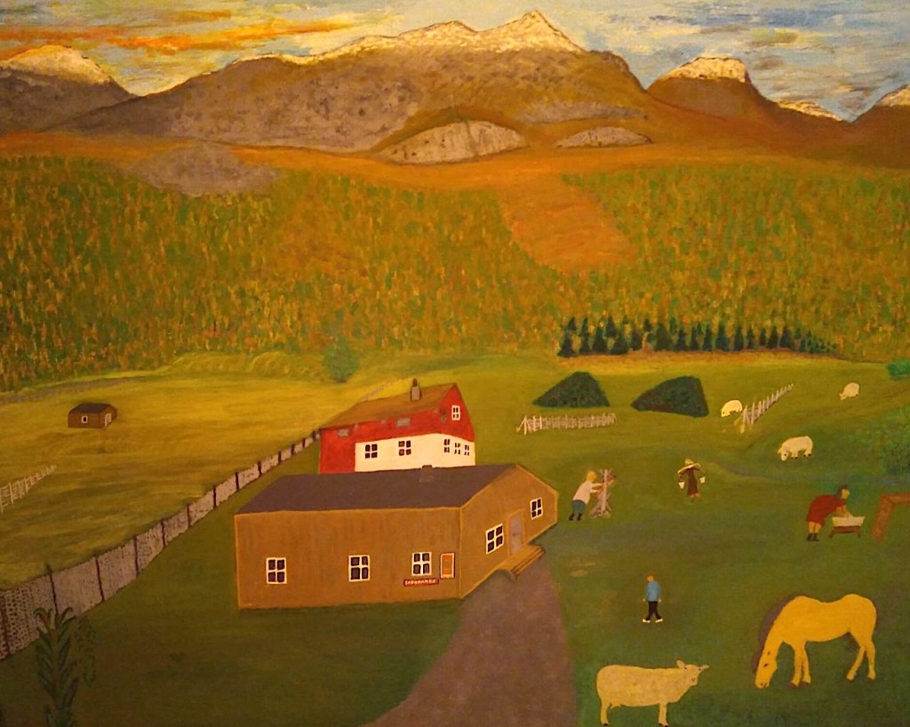 Per har malt barndomshjemmet, butikken, fjøsen og livet på småbruket, slik han husker det..
