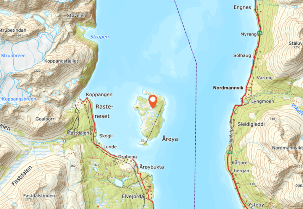 Årøya,Årøyholmen. Stor øy i Lyngenfjorden.