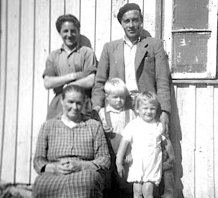 Her et bilde fra Tjorro-bakken. Fra venstre Ragnar, Øyvind, Rasmine, meg og «Dagge»