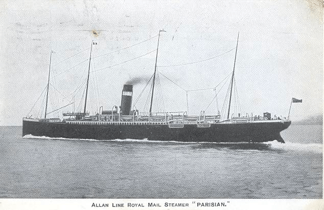 -Av ukjent grunn ble han noe heftet i England, og han ankom Québec først 1. juni 1902 med skipet «Parisian» som gikk i rute mellom Liverpool og Canada. Skipet hadde forlatt Liverpool 22. mai og dro via Moville og Londonderry i Irland over Atlanterhavet til Canada. Hans Erik var én av 639 voksne passasjerer om bord.