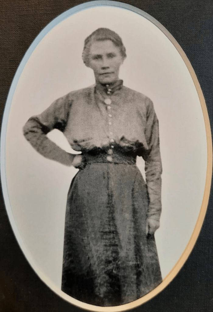 *C. Emelie Henriette Hansdatter (Henriksen, 1887-1963), g.m. Peder Henrik Henriksen (1872-1946) fra Samuelsberg i 1904. Bosted Ysteby.