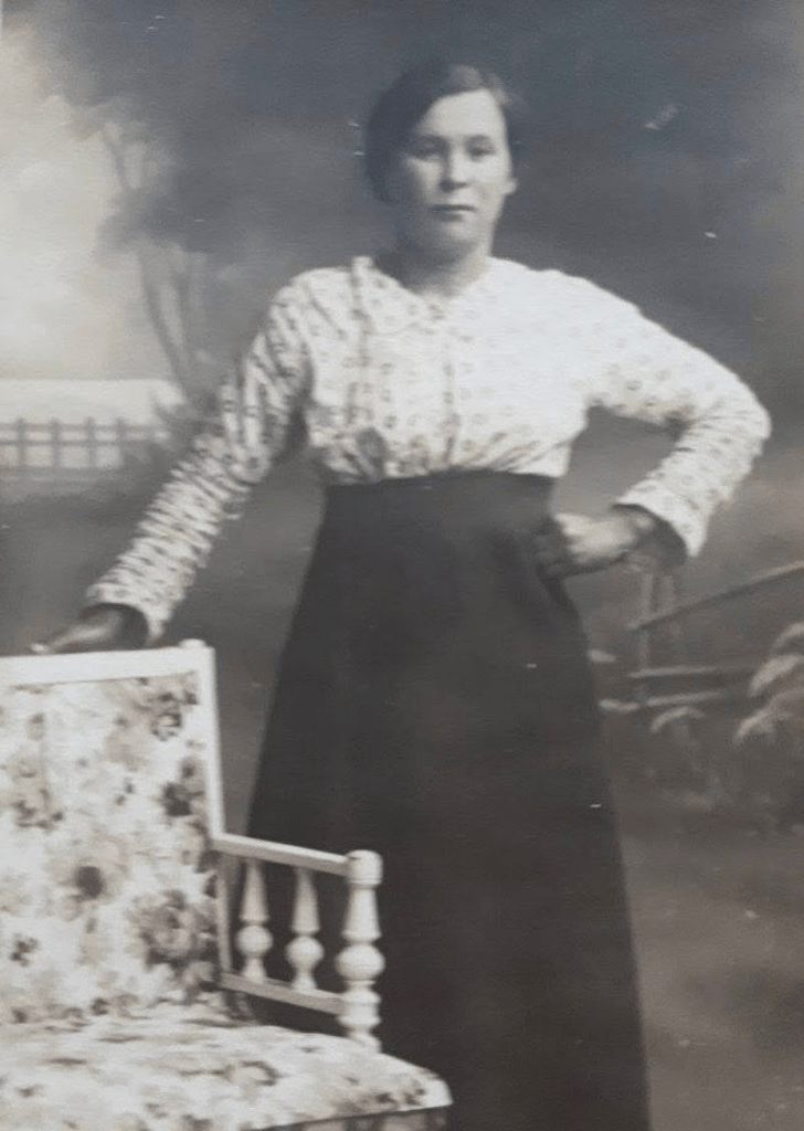 -4a. Sara Klausine «Sina» Petrea Larsdatter (Jensen Lien, 1894-1974), g.m. Peder Kristian Hansen (1884-e.1920) fra Olderdalen i 1918 og med Henrik Joakim Jensen Lien (1889-1955) fra Nordnes. Peder Kristian var bror til Oline, ref. *B.