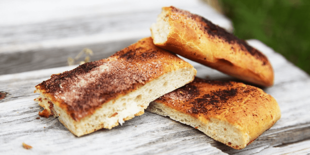 Kjevles eller formes med hender slik at et vanlig bakebrett dekkes. Legg leiven på et bakepapir- lag mange søkk i leiven med fingrene og pensl godt med smeltet smør på toppen. Bruk godt med smeltet smør. Fyll søkkene med smør. Strø godt med sukker og kanel på toppen. Du kan gjerne blande sukker og kanel på forhånd. Stekes på 220-225 grader i om lag 15- 20 minutter. Følg med så bunnen ikke blir for godt stekt.