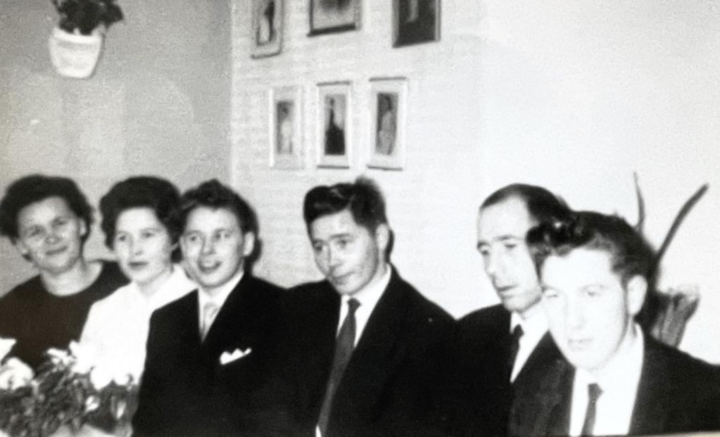 Etter 50 år i 2003 møttes de igjen: Foran ser vi læreren fra 1953 Odd Sæther med sin fru. Fra venstre bak: Agnor Mathisen, Einar Pedersen, Elly Næss, Eilif Solberg (gift med Hill Marta Solberg) Bjørg Storvik, Per Lilleberg, Kåre Eriksen og Petter Johansen.