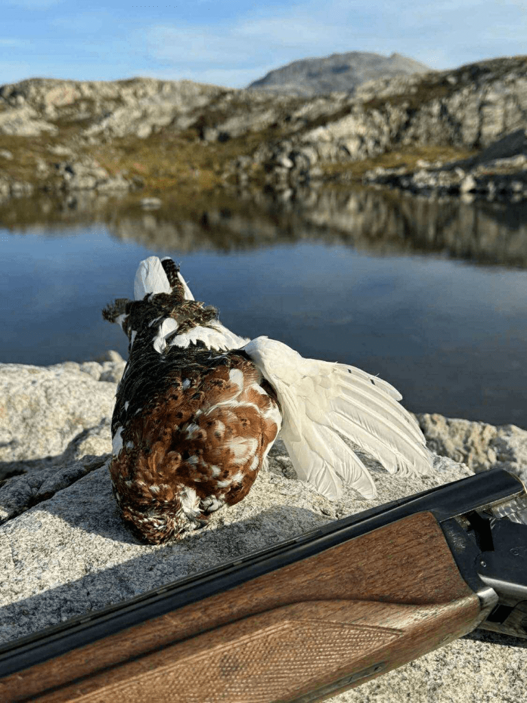 Linda og Trond på jakt på Ringvassøy, utenfor Tromsø. Jeg er svært takknemlig for å ha fått tillatelse til å bruke bildene fra et område jeg har jaktet i gjennom 55 år. Foto: Linda Tofteng Eliassen.