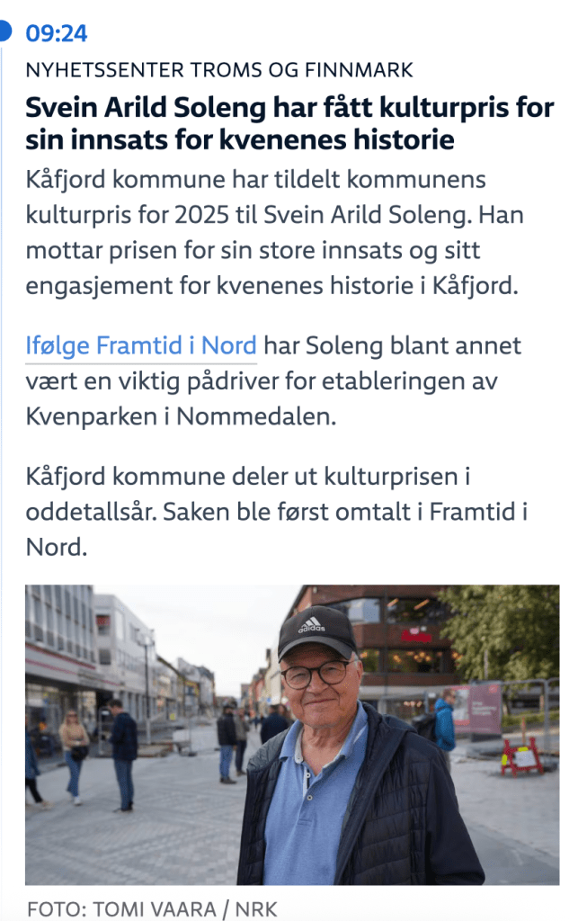 Født i Olderdalen i Kåfjord kommune. Bor i Tromsø. Gift med Leikny, far til to barn og bestefar til fem barnebarn. Har sterk interesse for lokalhistorie, idrett og friluftsliv, og er aktivt engasjert i arbeidet med å fremme kvensk språk og kultur. I 2025 ble jeg tildelt Kåfjord kommunes kulturpris. Se flere innlegg