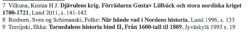 - Vilkuna, Kustaa H J: Djiivulens krig. Forriidaren Gustav Lillback ocb stora nordiska kriget1700-1721, Lund 2011, s. 16