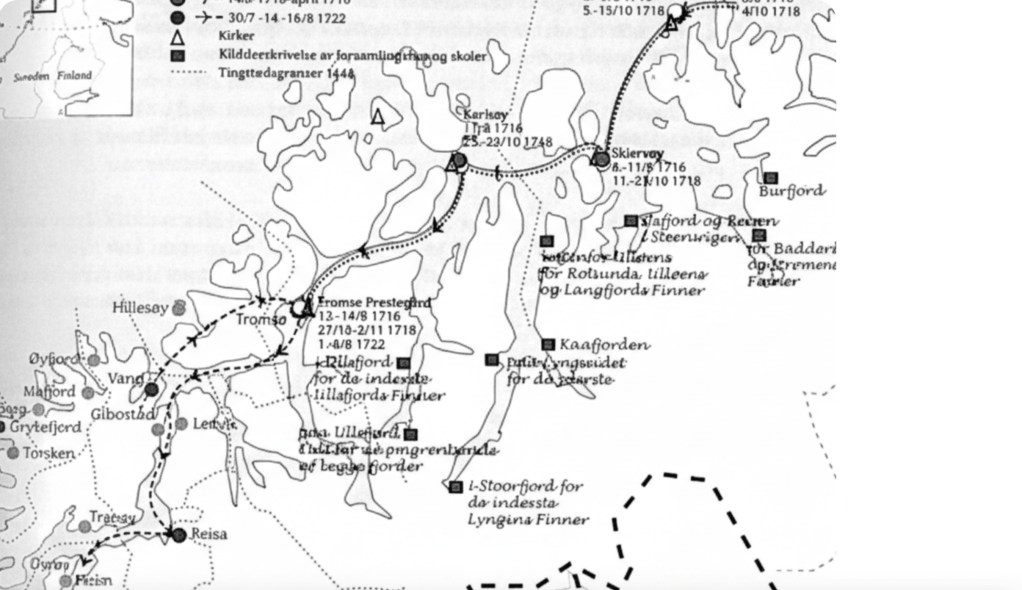 Her ser dere en oversikt der «finnemisjon» og Thomas von Westen etablerte forsamlingshus og kapeller i Nord Troms. Kaafjord Capel, Olderdalen var det første gudshus i Lyngenfjorden og ble til i 1722 og sto på Barslett til 1794. Da ble tømmerbygningen den ble flyttet til Lyngseidet og fungerte som skolestue i flere år.