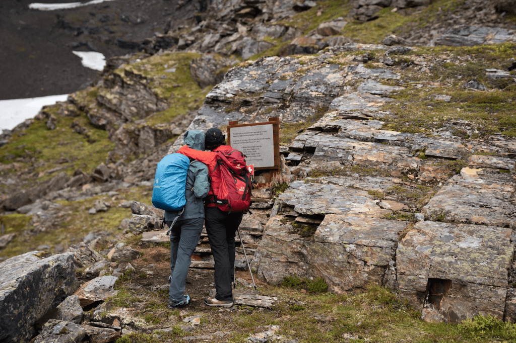 De etterlatte etter skredet på Sorbmegaisa i 2012 var i 2022 tilbake på stedet. Her ved minnesmerket under fjellet. FOTO: MARIUS HOE.