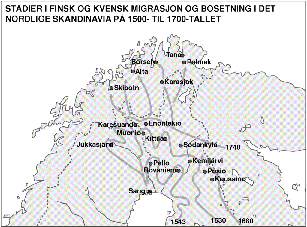 Svenske kilder beretter at da kong Carl X1 i 1660 lot bygge kirke i Kautokeino var det der bare 6 fastboende kvenske familier.