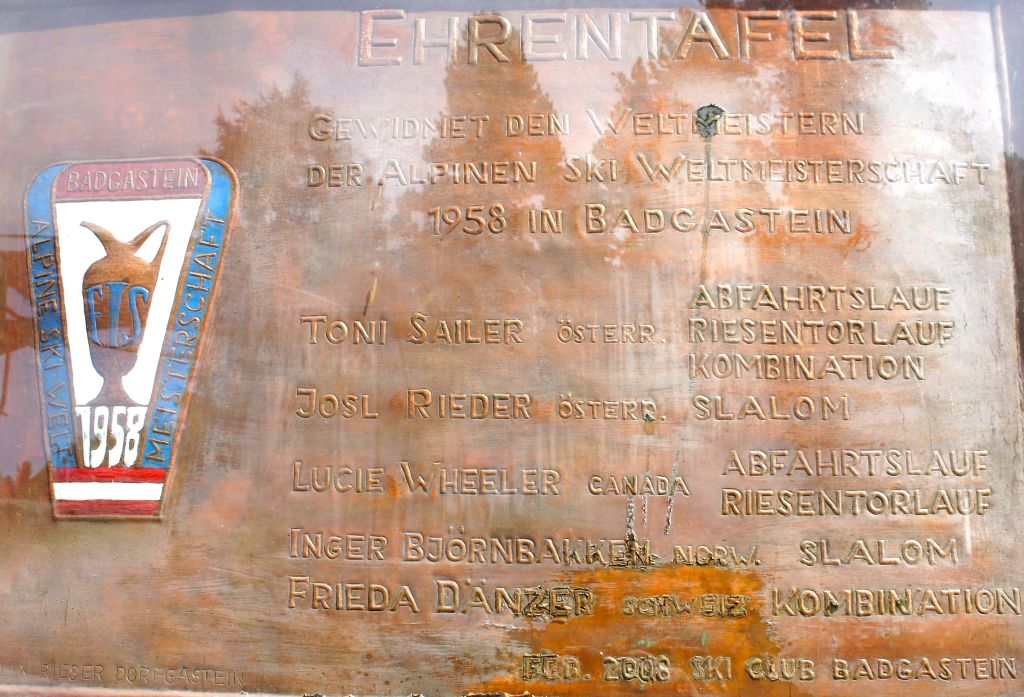 Bad Gastein arrangerte alpin-VM i 1958 der Inger Bjørnebakken tok gull i slalom. Toni Sailer ble imidlertid den store VM-konge med 3 gull og 1 sølv.