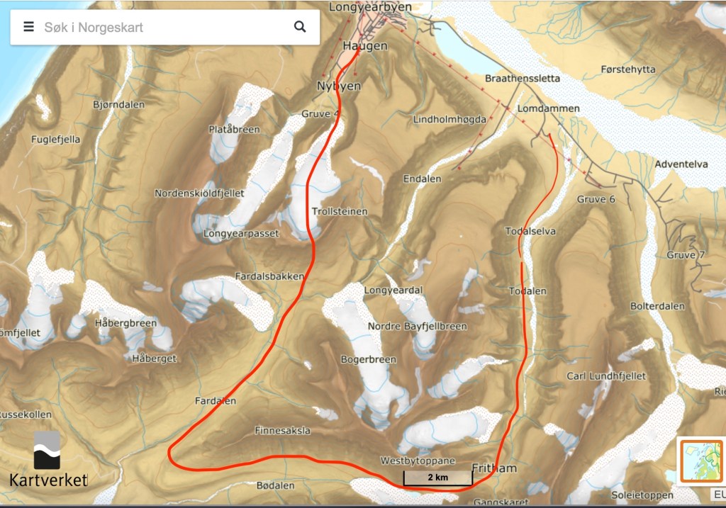 Dagen etter startet vi klatringa opp Fardalen mot Longyearbreen. Det var et slit, men det gikk på et vis. Nedstigningen til Longyearbyen var problemfritt. Jeg ville imidlertid valgt en annen rute neste gang.
