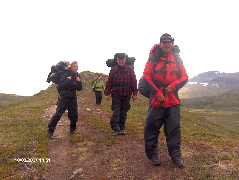 Vi møttes på Lyngskroa Motell på Oteren. Derfra kjørte vi med buss til Kilpisjärvi. Ved Kilpisjärvi lå båten Malla som fraktet oss over sjøen. På den andre siden gikk par kilometer til Treriksrøysa. Været ble dårlig utpå kvelden, så vi slo leir etter par times gange. Dagen etter var været blitt bedre og vi fortsatte turen videre mot Pältsa Fjällstugan, inne i Sverige. Lunsjen ble inntatt ved fjellstua der en lite vennlig svenske styrte med hard hand. Vi fortsatte turen videre langs en 11 km lang morenerygg, (europas lengste) til vi nådde Gappohytta øverst i Barrasdalen. Der teltet vi for andre gang og fortsatte videre dagen etter til Signaldalen. Der sto en buss og fraktet oss videre til Lyngskroa. Litt dårlig vær første kvelden. Ellers en fin tur.