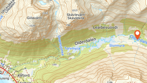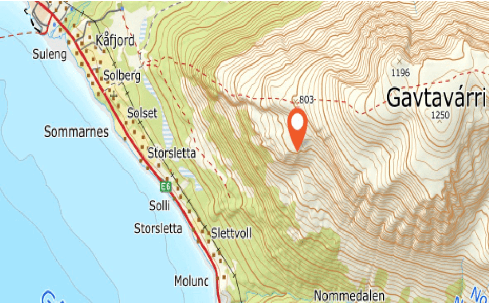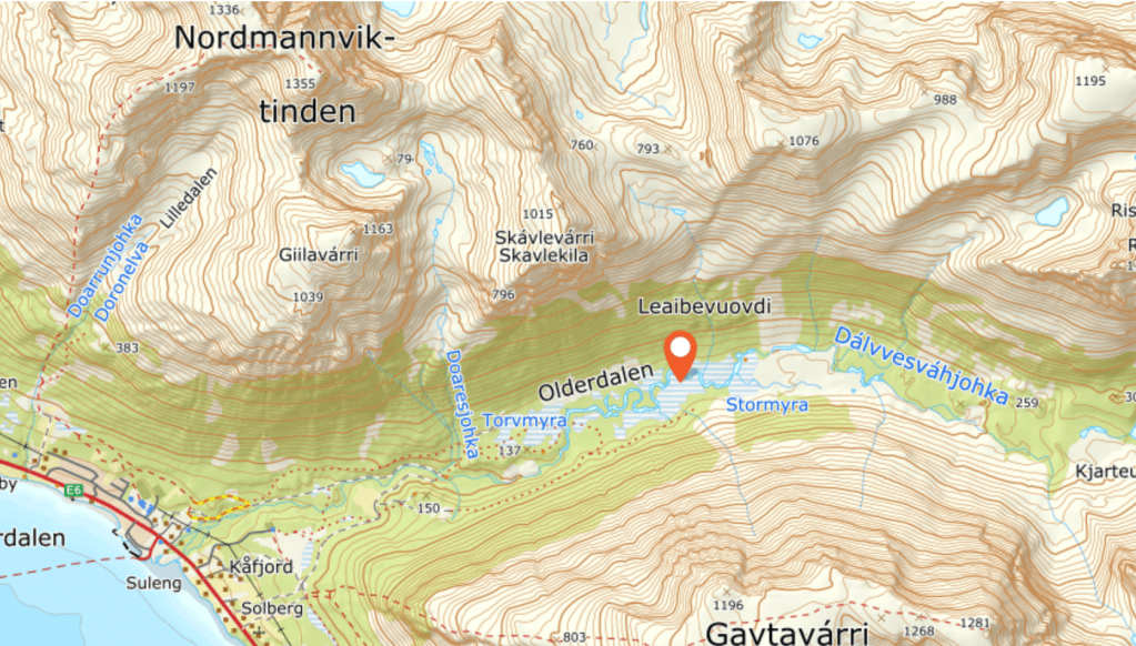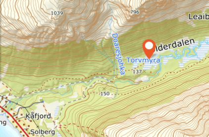 Kart over den samiske boplassen ligger ca. 4 km fra bygda.