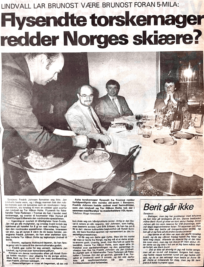 Ankommet til Jens og Hilda stekte pølser og flesk og vi åt oss mette. – no e dåkker go åg mætt, sa Jens,-så då sko de væll være opp åg avjort, de herran?.
