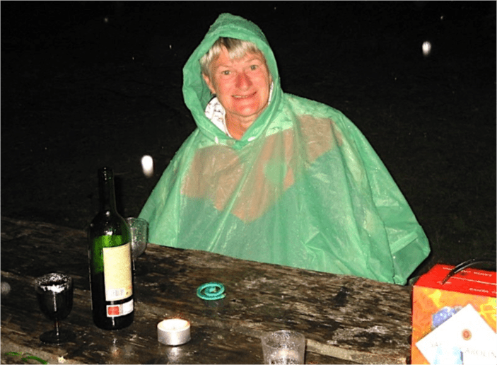 Nydelig kveld og alle koser seg med myggolje og noe godt i glasset.