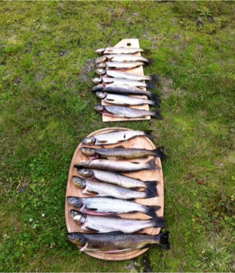 I Hattfjelldal ble det mye fisking og turgåing. Når jeg ser bildene i dag er jeg imponert hvor mye fisk vi fikk.