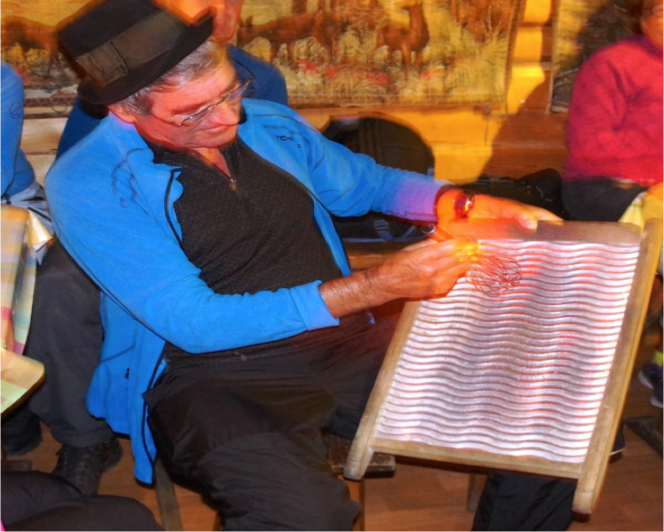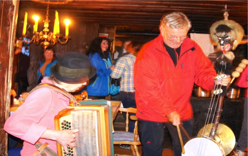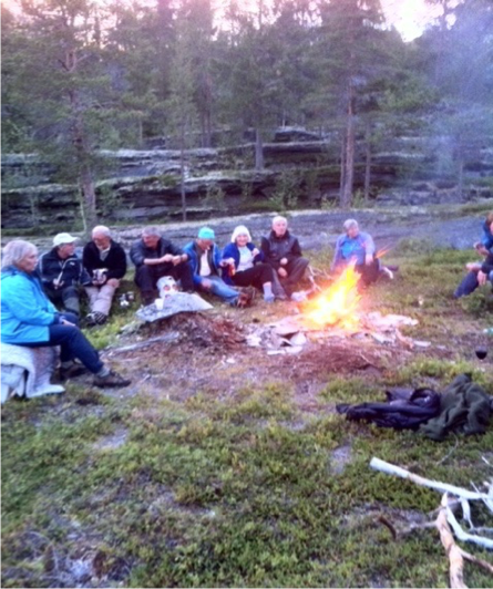 Etter en utflukt havnet vi her, i en mørk grotte i skogen. Alle ser spente ut og lurer på hva som skjer… Stemningen tok seg opp da vi fikk mat og god trekkspillmusikk. Våre egne folk bidro på men mesterlig måte.