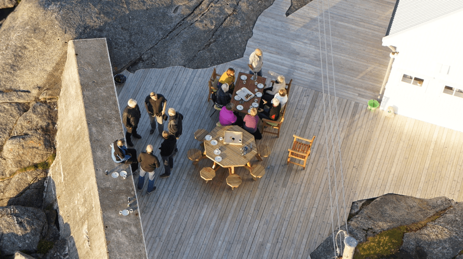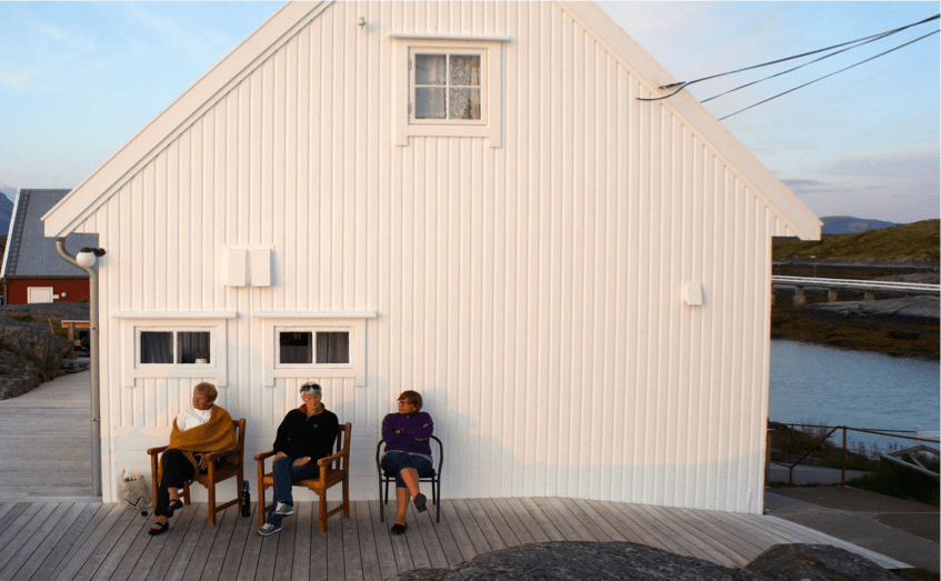 I 2012 møttes vi på den gamle prestegården på Kjerringøy. Gården er bygd på 1880-tallet og ligger noen hundre meter fra Kjerringøy gamle handelssted. Hovedhuset har fire soverom, to stuer, kjøkken og et stort kontor i tillegg til bad og toaletter. Fjøset er innredet med fire soverom, kjøkken og oppholdsrom.