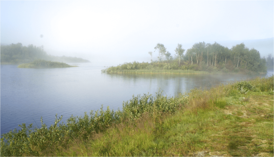 Her er vi kommet fram til Reisavann. Mygga ønsker oss velkommen.