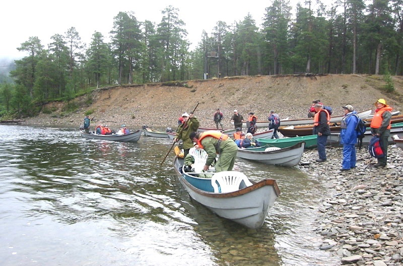 Her blir vi fordelt i fem båter. Vi hadde kanoer i elvebåten da guttene skulle padle fra Naustneset og ned til Bilto.