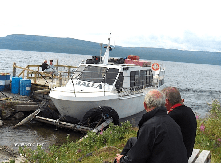 Båten «Malla» tok oss over Kilpisjavri til Treriksrøysa. Et punkt der Norge,Sverige og Finnland møtes.
