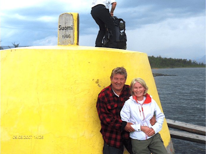 Grensemerket ligger på en liten holme ved Golddajávri. Det var her vi opplevde to damer sørfra som spurte en same: «Går det ant å drikke det vannet her»? «Her skal du bare drikke, her blir det aldri tomt, sa samen.