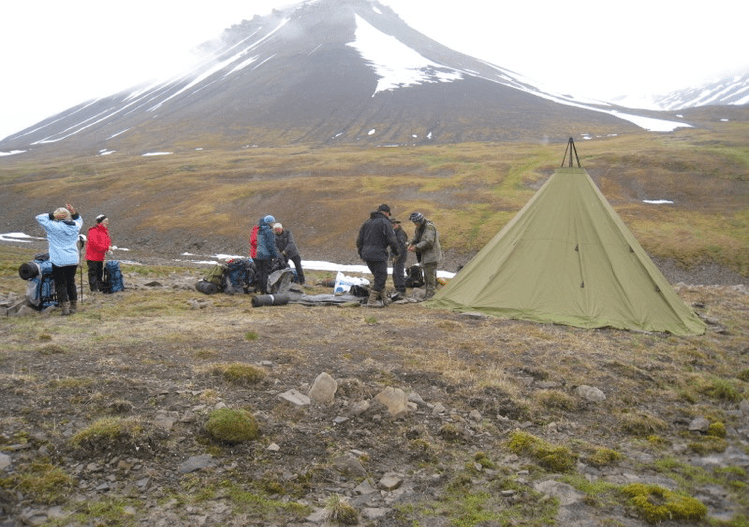 Turleder Sandmo var nøye med å sikre teltleiren. På Svalbard er det vanlig å sette opp snubletråder for vern mot isbjørn. Snubletrådene utløser bluss som skremmer isbjørnen og varsler dem som sover i teltet.