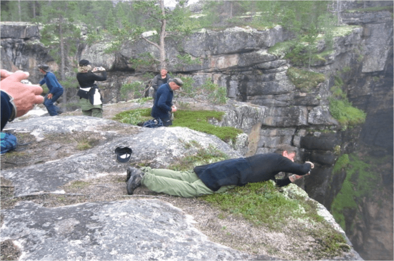 Dagen etter var det tur til Nord-Europas største elvegjel, Alta canyon. Du må passere myrområder, men området er godt tilrettelagt med klopping og merking. Fra endepunktet er det satt opp et gammelt gjerde ved kanten – og herfra og ned til elva er det godt over 100 meter. Her er også benker og bålplass. Noen valgte å gå opp til Nordlysobservatoriet ved Halde.